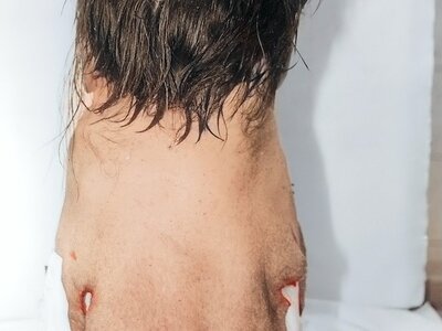 Poland, 1999. A 26-year-old man killed his father by multiple puncture wounds to the chest and neck using a sharpened screwdriver. He lured his father into the cellar and, after this, he hung his father by the legs in a cellar window and decapitated him.