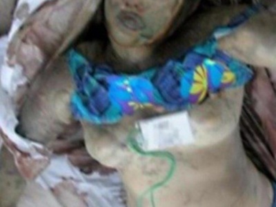 Dead drowned topples woman with hard nipple