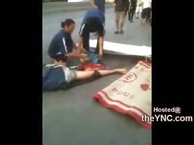 Popped Head: Shirtless Man carrying Garbage Bag Head Exploded and Ripped Off by Truck